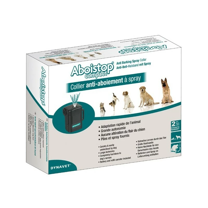 De spray is onschadelijk. U hebt twee jaar fabrieksgarantie op de Aboistop (anti-blafband).