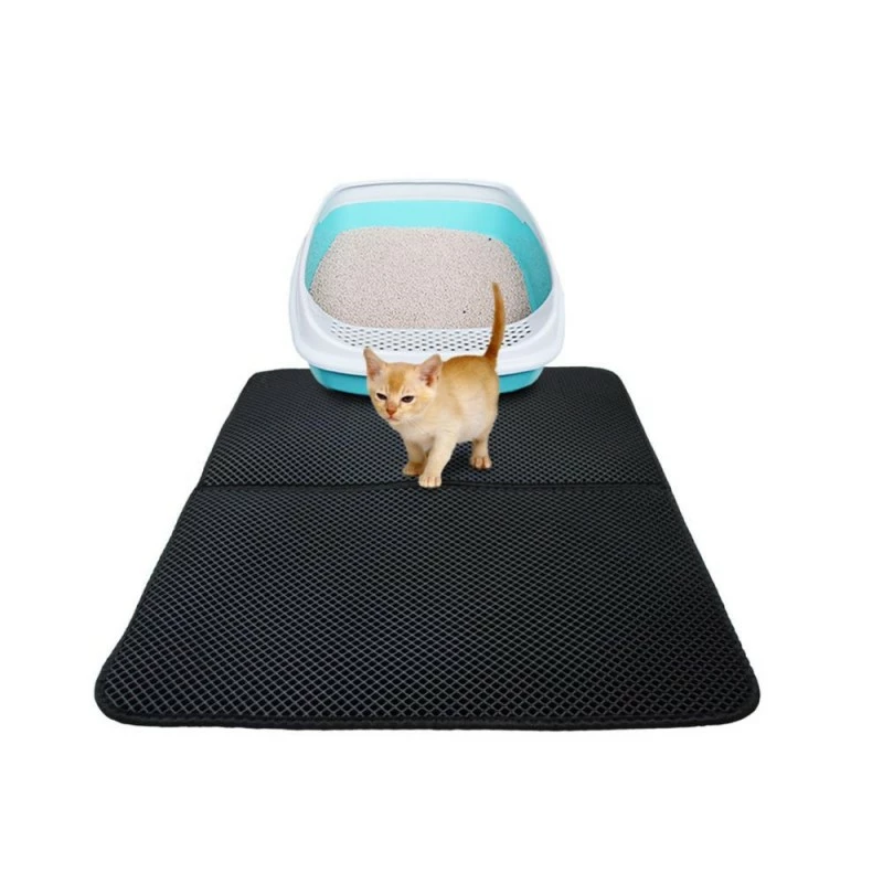 - De bovenkant van de mat bestaat uit een rasterwerk dat het kattengrind opvangt en vermijdt dat de grind zich verspreidt over de grond.