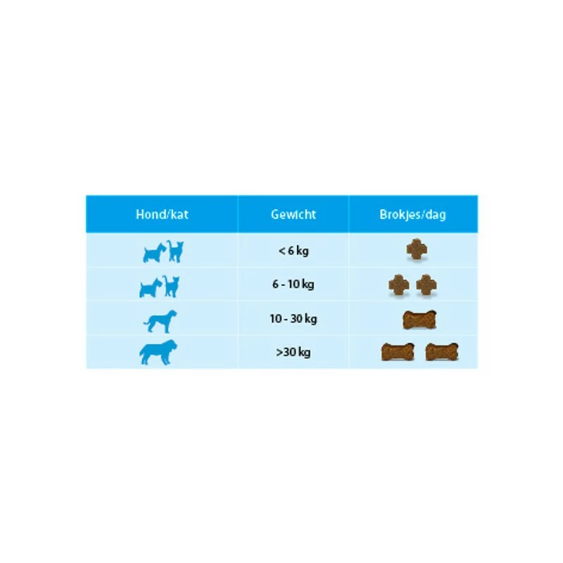 | Honden en Katten < 6kg | 1 brokje | |