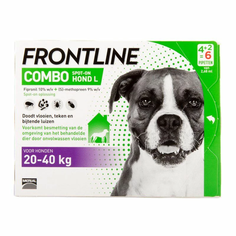 Frontline Combo is voor de behandeling van honden: tegen infestatie met vlooien, alleen of in combinatie met teken en/of bijtende luizen.