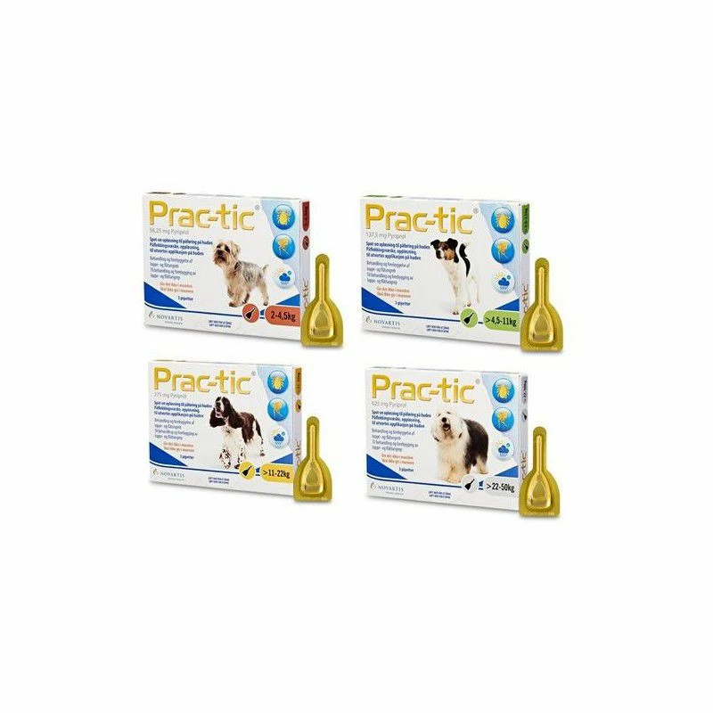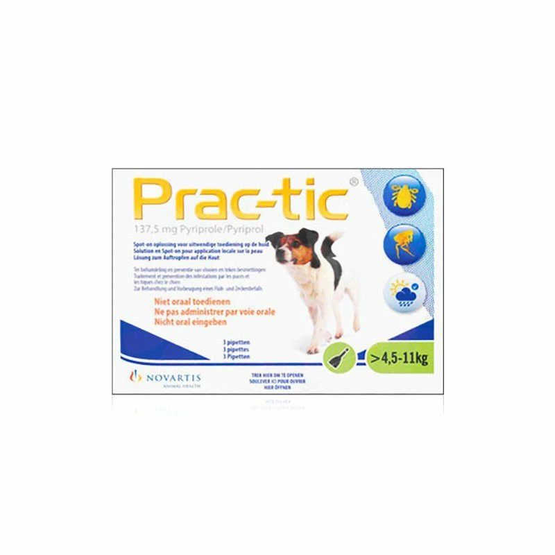 - Honden tussen 4,5 en 11 kg : Prac-tic S voor kleine honden (137,5 mg Pyriprole)
