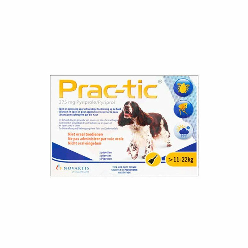 - Honden tussen 12 kg en 22 kg : Prac-tic M voor gemiddelde honden (275 mg Pyriprole)