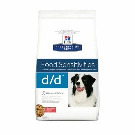 - Prescription Diet Canine d/d Zalm en Rijst helpt de symptomen van een allergische voedselreactie te onderdrukken en houdt de huid gezond dankzij de juiste hoeveelheid natuurlijke omega 3-vetzuren.