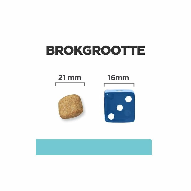 - Met kleinere brokjes voor honden die minder dan 25 kg wegen.