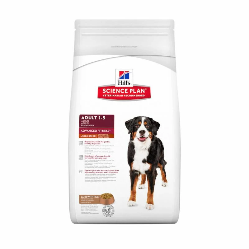 - Science Plan Canine Adult Advanced Fitness Large Breed Lamb & Rice heeft verhoogde gehaltes aan omega-3 en -6 vetzuren voor een gezonde huid en een glanzende vacht.