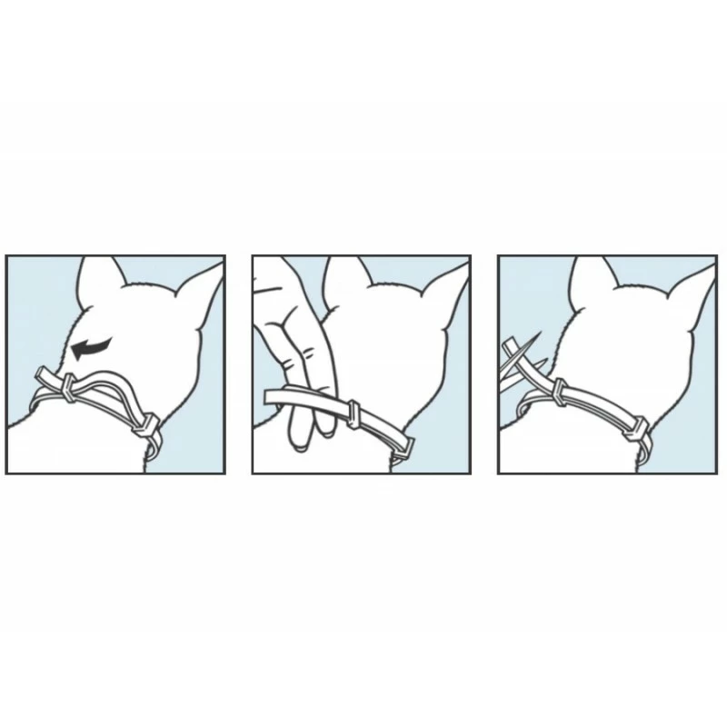 2) Doe de halsband rond de nek van de kat zonder te strak aan te trekken (een ruimte van twee vingers tussen de halsband en de nek van uw kat is aanbevolen).